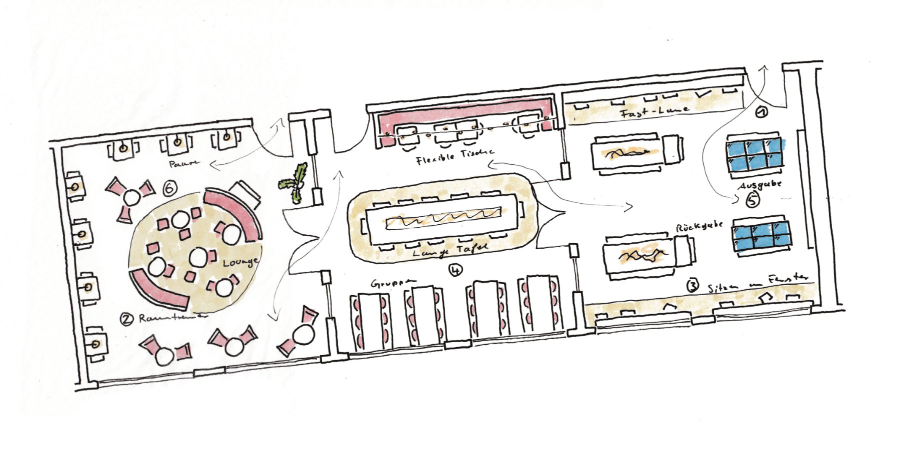Zonierung schafft klare Bereiche für unterschiedliche Tätigkeiten: ruhige Lernzonen, Gruppenarbeitsbereiche, Kreativ- oder Entspannungszonen. Durch gezielte Platzierung von Möbeln, Teppichen, Akustikelementen oder Raumteilern können Räume flexibel genutzt werden und gleichzeitig unterschiedliche Bedürfnisse der Lernenden oder Mitarbeitenden berücksichtigt werden.